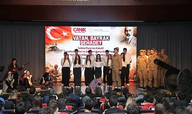 Canik Belediyesi ve Canik İlçe Milli Eğitim Müdürlüğü iş birliğiyle düzenlenen programda, öğrenciler tarafından sahnelenen Çanakkale Geçilmez Oratoryo Gösterisi ve ‘O Gün Mecliste’ adlı drama gösterisi katılımcılar tarafından ilgiyle takip edildi. Sezai Karakoç Canik Kültür Merkezi’nde gerçekleştirilen programda öğrencilerin seslendirdiği marşlara katılımcılar ellerinde salladıkları Türk bayraklarıyla eşlik etti. Salonun Türk bayraklarıyla donatıldığı, duygu dolu anlar ile birlikte coşkulu anların da yaşandığı program çerçevesinde, ayrıca Canik Borsa İstanbul Anadolu Lisesi öğrencilerinin yer aldığı koro tarafından Sakarya Marşı, Ordunun Duası ve Bayrağım Marşı seslendirildi.