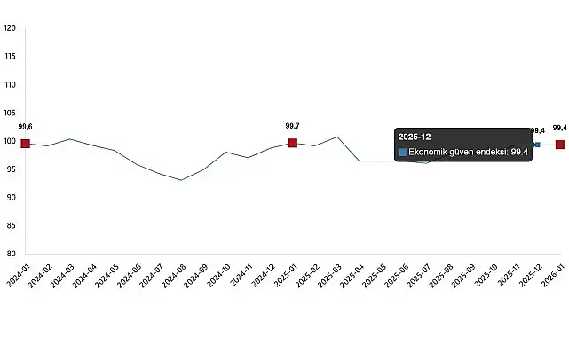 Ekonomik güven endeksi Ocak ayında aynı düzeyde kalarak 99,4 değerini aldı.