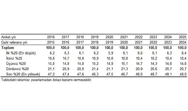 Gelir Dağılımı İstatistikleri, 2025