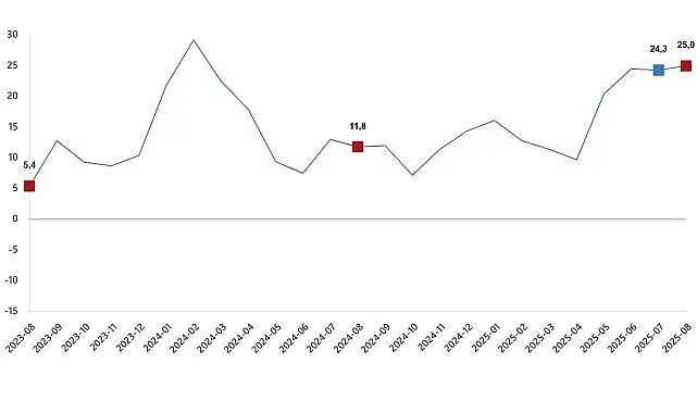 İnşaatın alt sektörleri (2021=100 referans yıllı) incelendiğinde, 2025 yılı Ağustos ayında bina inşaatı sektörü endeksi bir önceki yılın aynı ayına göre %26,6 arttı, bina dışı yapıların inşaatı sektörü endeksi %17,4 arttı ve özel inşaat faaliyetleri sektörü endeksi %25,1 arttı.