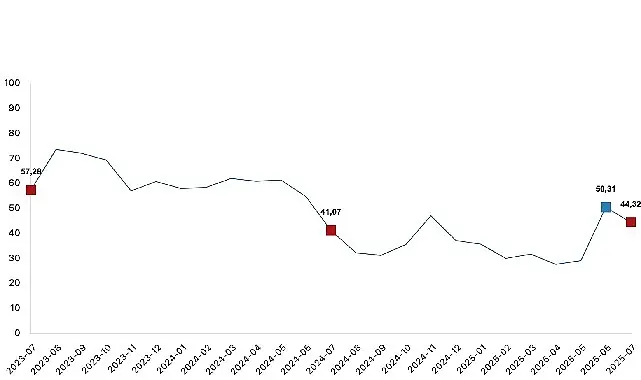 Tarım-ÜFE’de (2020=100), 2025 yılı Temmuz ayında bir önceki aya göre %5,66 azalış, bir önceki yılın Aralık ayına göre %26,18 artış, bir önceki yılın aynı ayına göre %44,32 artış ve on iki aylık ortalamalara göre %35,92 artış gerçekleşti.