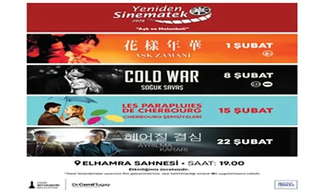 Yeniden Sinematek, şubat ayında “Aşk ve Melankoli” temasıyla sanatseverlerle buluşmaya hazırlanıyor. Farklı ülke sinemalarından dramdan müzikale uzanan geniş bir tür yelpazesinden filmlerin yer aldığı seçkide Institut Français iş birliğiyle yapılacak bir gösterim de yer alıyor. Ücretsiz gösterimler şubat ayı boyunca her pazar saat 19.00’da Elhamra Sahnesi’nde izleyici ile buluşacak.